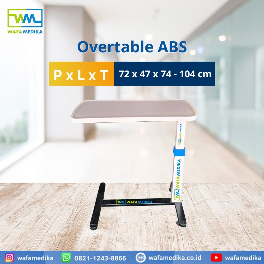 Selain itu, meja ini mudah dibersihkan dan biasanya dilengkapi pengatur tinggi serta roda agar mudah dipindahkan. Dengan desain yang praktis, overtable ABS membantu meningkatkan kenyamanan pasien selama masa perawatan.