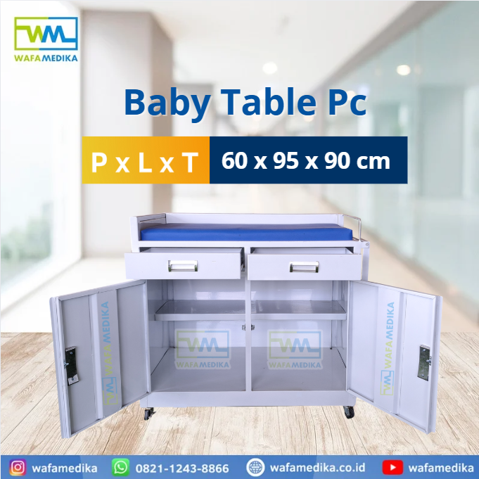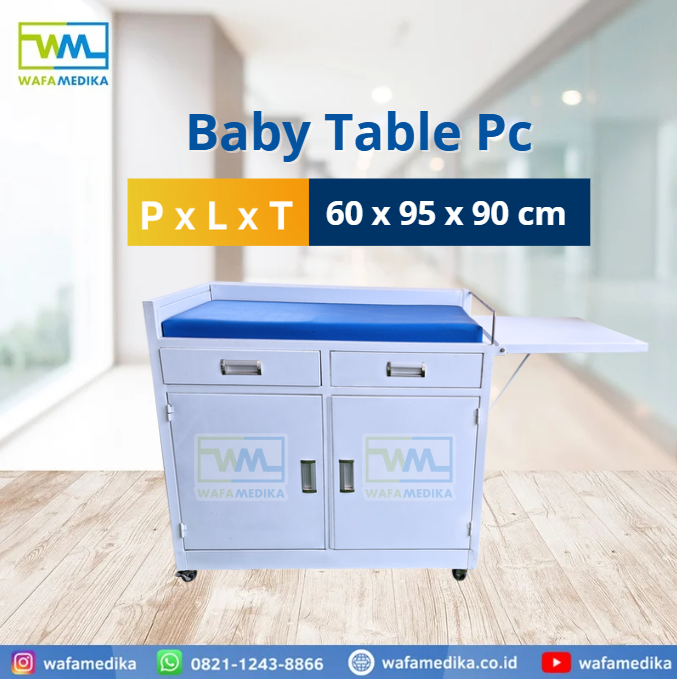 Baby Table merupakan meja periksa yang digunakan untuk keperluan medis anak, bidan, rumah sakit spesialis anak ataupun kebutuhan pribadi rumahan. Baby Table ini dirancang mengikuti perkembangan medis dan non medis sangat sesuai untuk jenis interior apapun. lebar bed dirancang untuk panjang Bayi pada umumnya sehingga dapat digunakan untuk 2 orang bayi sekaligus. Bahan matras yang kami gunakan terbuat dari bahan berkualitas terbaik seingga dapat menjaga bayi terperosot dari meja.