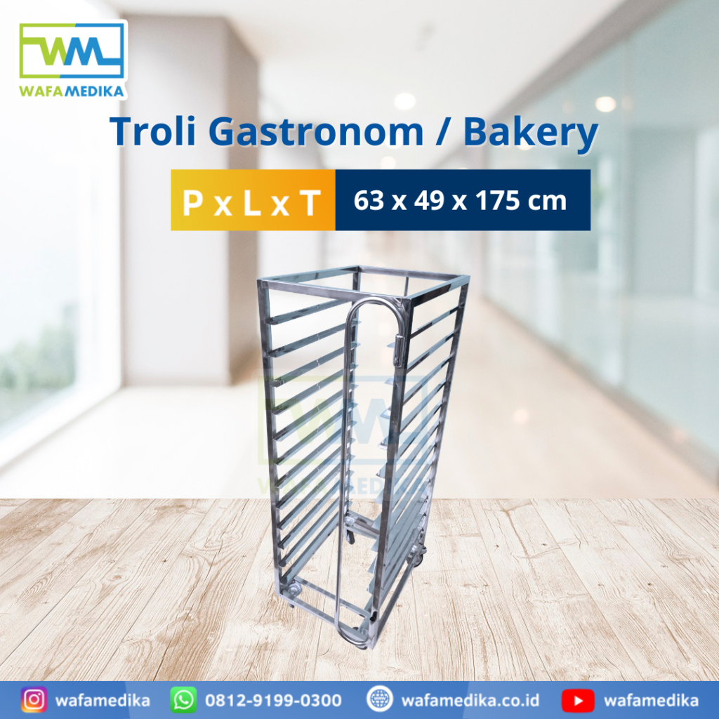 Beberapa troli stainless untuk dapur salah satunya yaitu troli gastronom. Troli gastronom di wafa medika berfungsi untuk menaruh nampan untuk nasi maupun makanan lain nya, troli gastronom di wafa medika bisa di custom baik untuk ukuran, maupun model. Troli sudah dilengkapi dengan pengunci pada roda agar troli lebih aman dan tidak mudah bergerak.