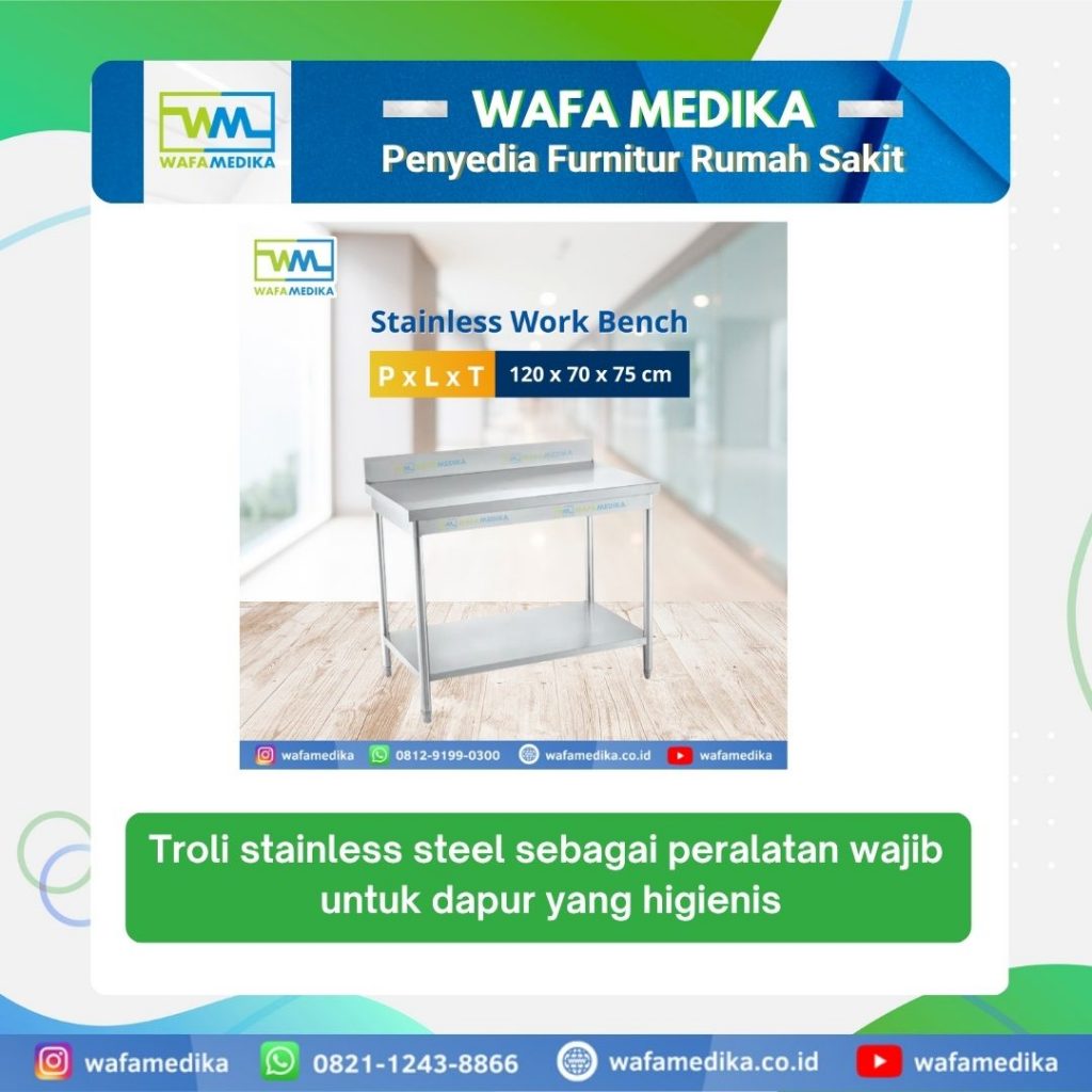 Itu dia sobat wafa informasi mengenai Troli stainless steel sebagai peralatan wajib untuk dapur yang higienis. Apabila sobat wafa berminat, bisa hubungi kami untuk informasi pemesan. Kontak kami bisa sobat wafa lihat pada menu CONTACT.